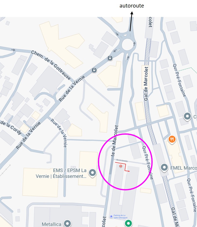 - Accès à pied à la salle, en remontant la rue du Marcolet. Plan d’accès au collège, téléchargeable, en cliquant ici.